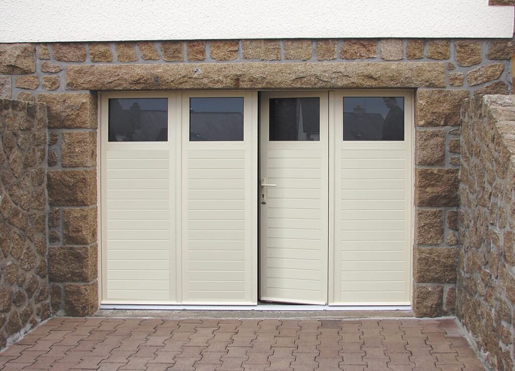 Classiques et intemporelles, les portes de garage battantes s’ouvrent vers l’extérieur en deux vantaux. Faciles à poser, elles ne nécessitent pas de rail ou de mécanisme complexe. Elles offrent une bonne durabilité, un accès rapide et peuvent être entièrement personnalisées en termes de matériaux, couleurs et finitions pour s’harmoniser avec votre habitation.