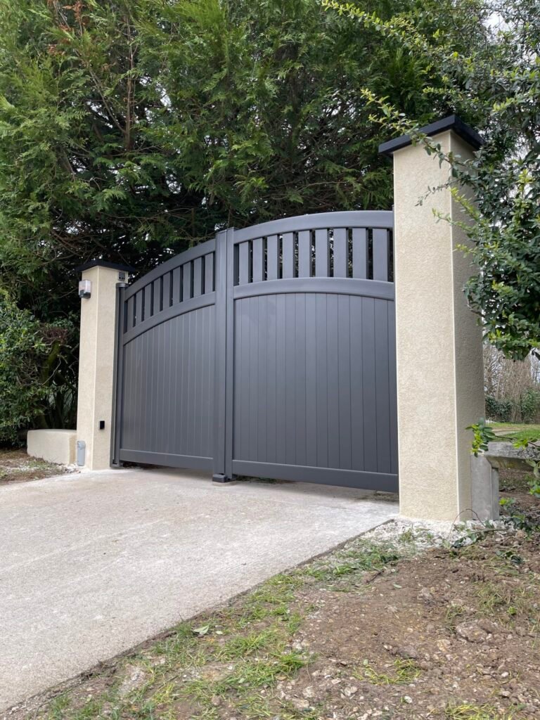 Avant Après Installation d’un portail motorisé avec maçonnerie complèteL’équipe Auralys est intervenue pour l’installation d’un portail aluminium motorisé accompagné de sa maçonnerie complète : dalle, fondations, poteaux, crépi, chapeaux ainsi que les travaux d’électricité (raccordement au tableau, passage et acheminement des…