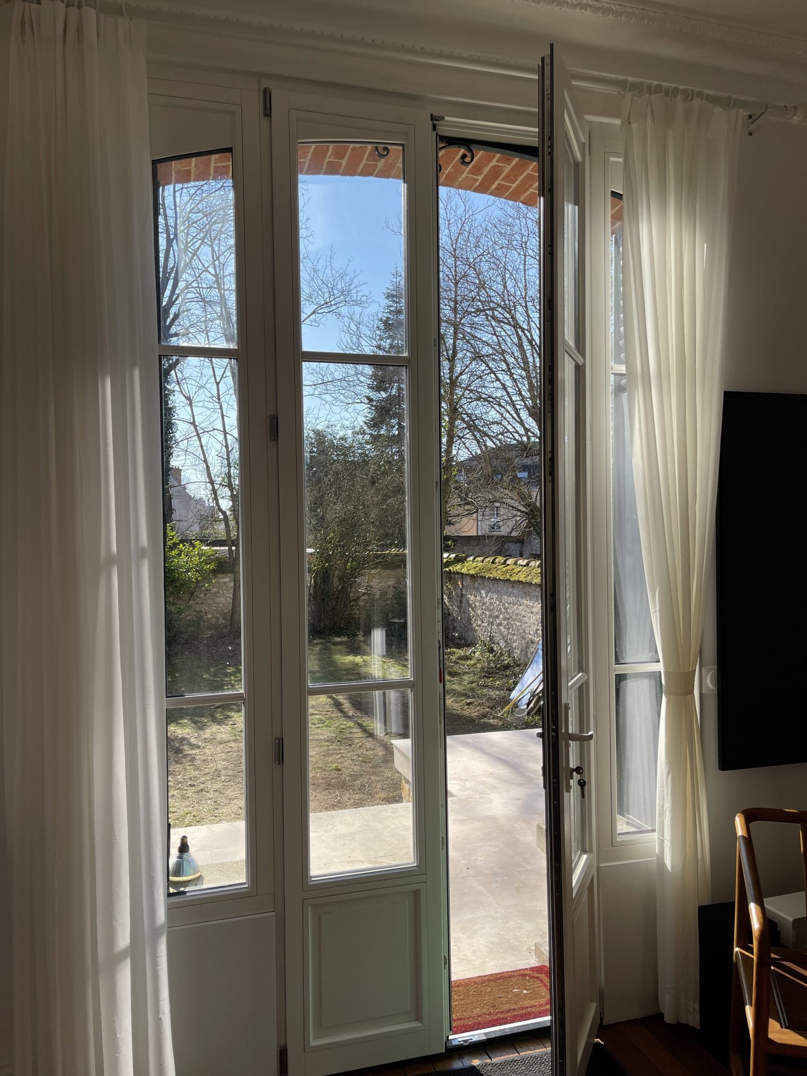 Afin de préserver l’identité de la maison, le style traditionnel à la française a été reproduit à l’identique. Auralys a procédé au remplacement complet des menuiseries, permettant de remettre l’isolation phonique et thermique aux normes actuelles. Les nouvelles fenêtres et portes-fenêtres proviennent de la gamme INOVA (Bois) de chez Bieber, conçues sur-mesure. Elles peuvent adopter toutes les formes et s’adapter à tous les styles, du plus traditionnel au plus contemporain.