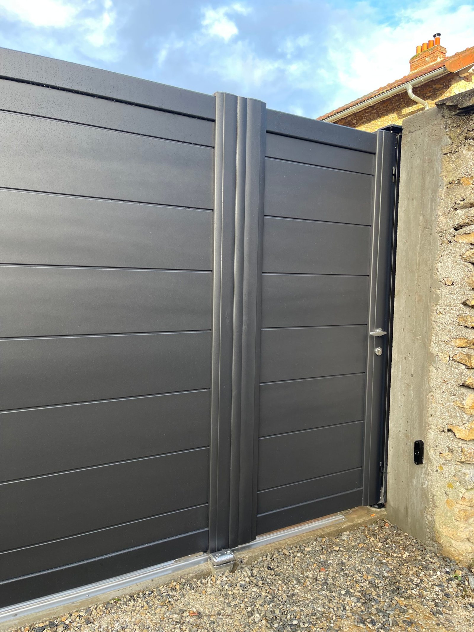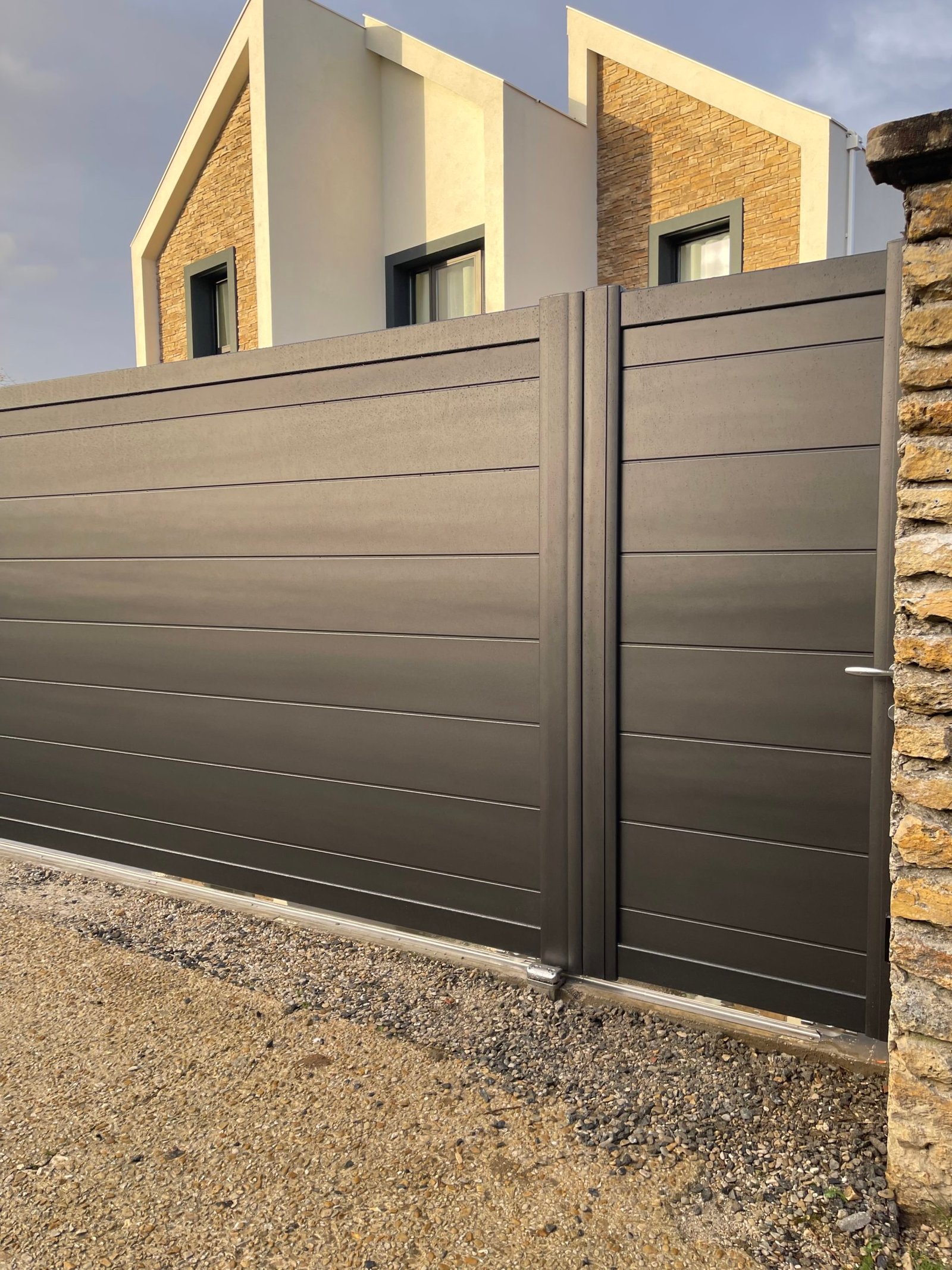 Le portail coulissant motorisé avec portillon intégré est une solution innovante et pratique, idéale lorsque l’espace ne permet pas de créer une seconde ouverture dédiée, ou pour éviter d’ouvrir le portail complet à chaque passage piéton.