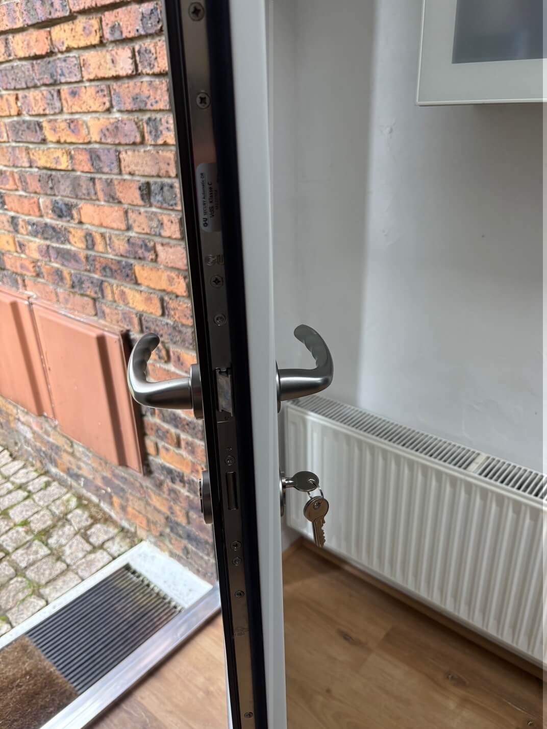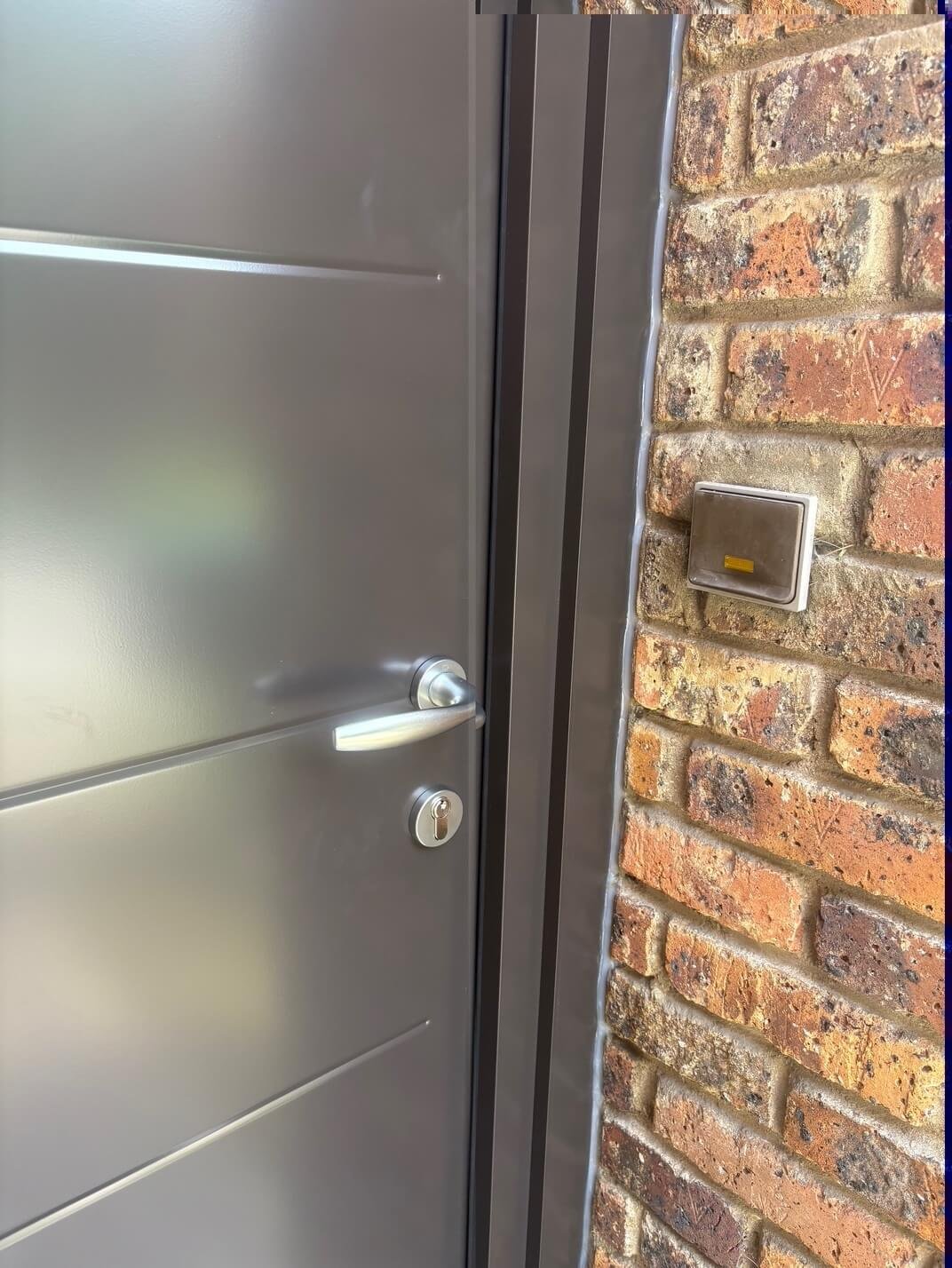 Découvrez notre pose en rénovation d’une porte en acier bi-coloration : Blanc intérieur (9016) / Marron extérieur (8019). Finition parfaite intérieur/extérieur, alliant style élégant, sécurité renforcée et isolation thermique optimale. Installation soignée pour un rendu durable et impeccable. Contactez-nous dès maintenant pour vos projets et un devis personnalisé !