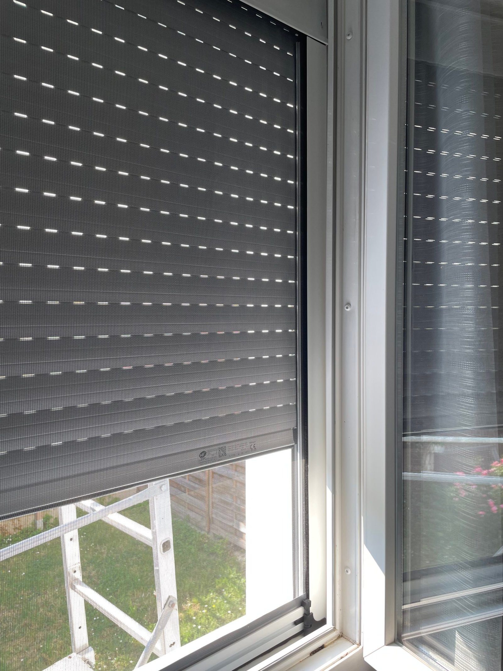 Pensé pour une intégration discrète, le modèle Visio minimise son emprise sur la fenêtre et le vitrage grâce à un caisson compact, des coulisses de faible profondeur et une lame finale escamotable.
